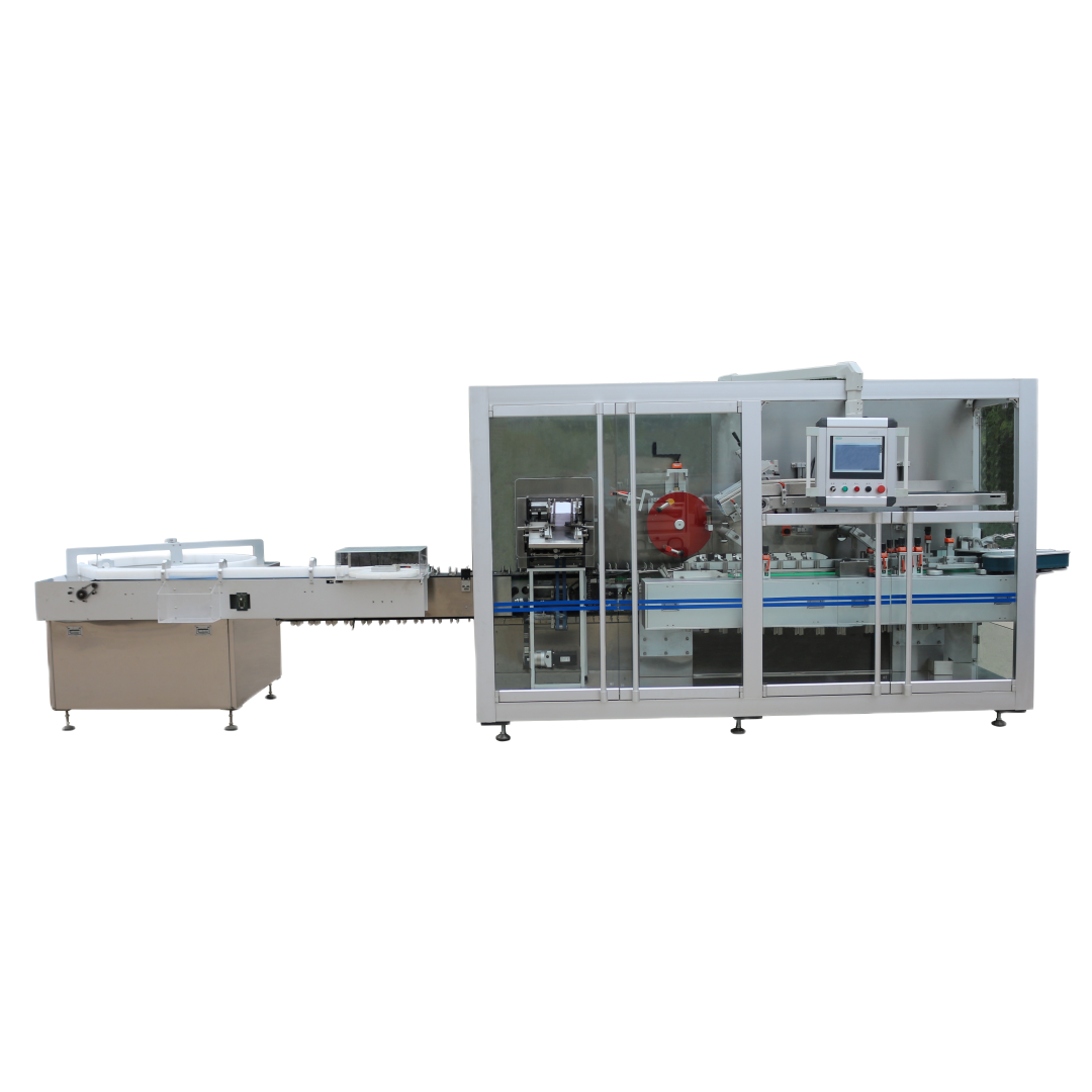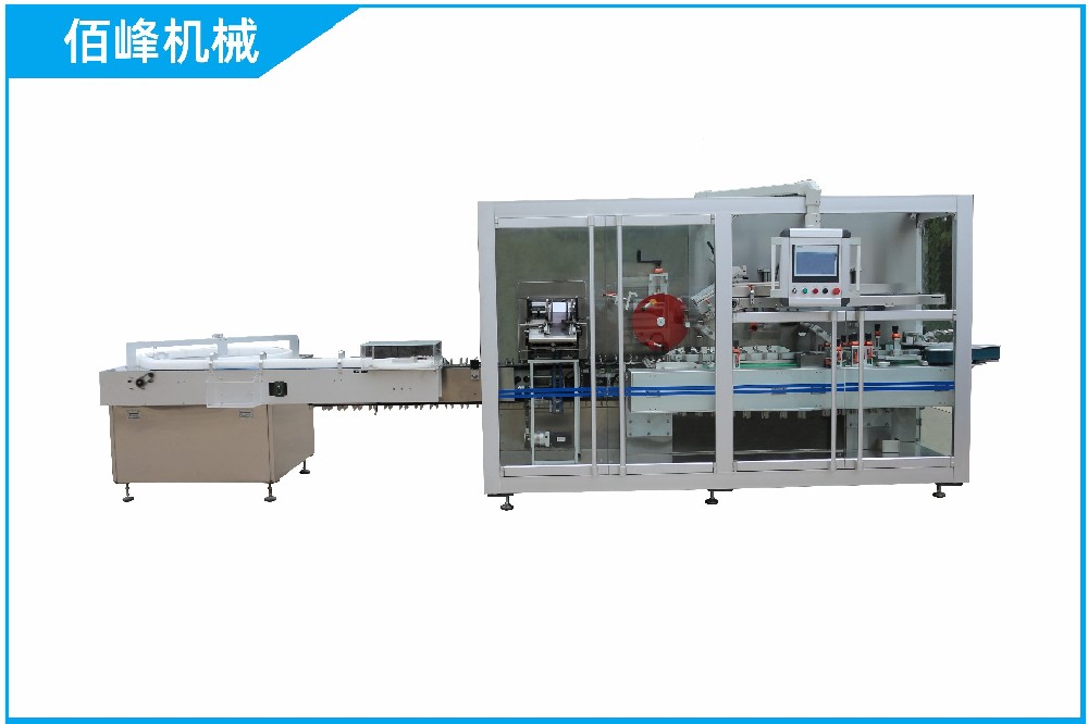 連續(xù)運轉(zhuǎn),紙盒與藥品都是呈臥倒方式進(jìn)行包裝裝盒。
